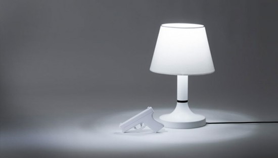 The BANG! lamp does include a traditional on/off switch on the cord, but what would be the point of spending three hundred and ninety-nine dollars on a pretend shooting gallery-light, if you did not act out the Mission Impossible sequences and bust out the cheap looking lamp with a cheaper looking micro plastic gun remote control?