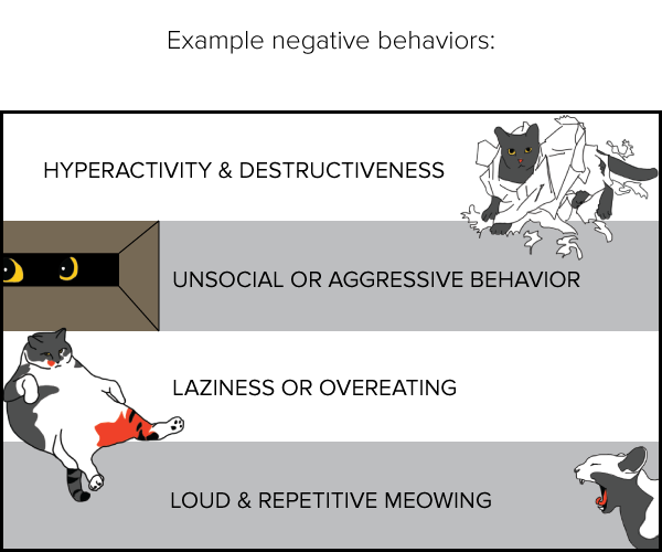 And this thing alleviates four major bad behaviors typical in cats not getting outside to resume the instinctual hunt (see the diagram).