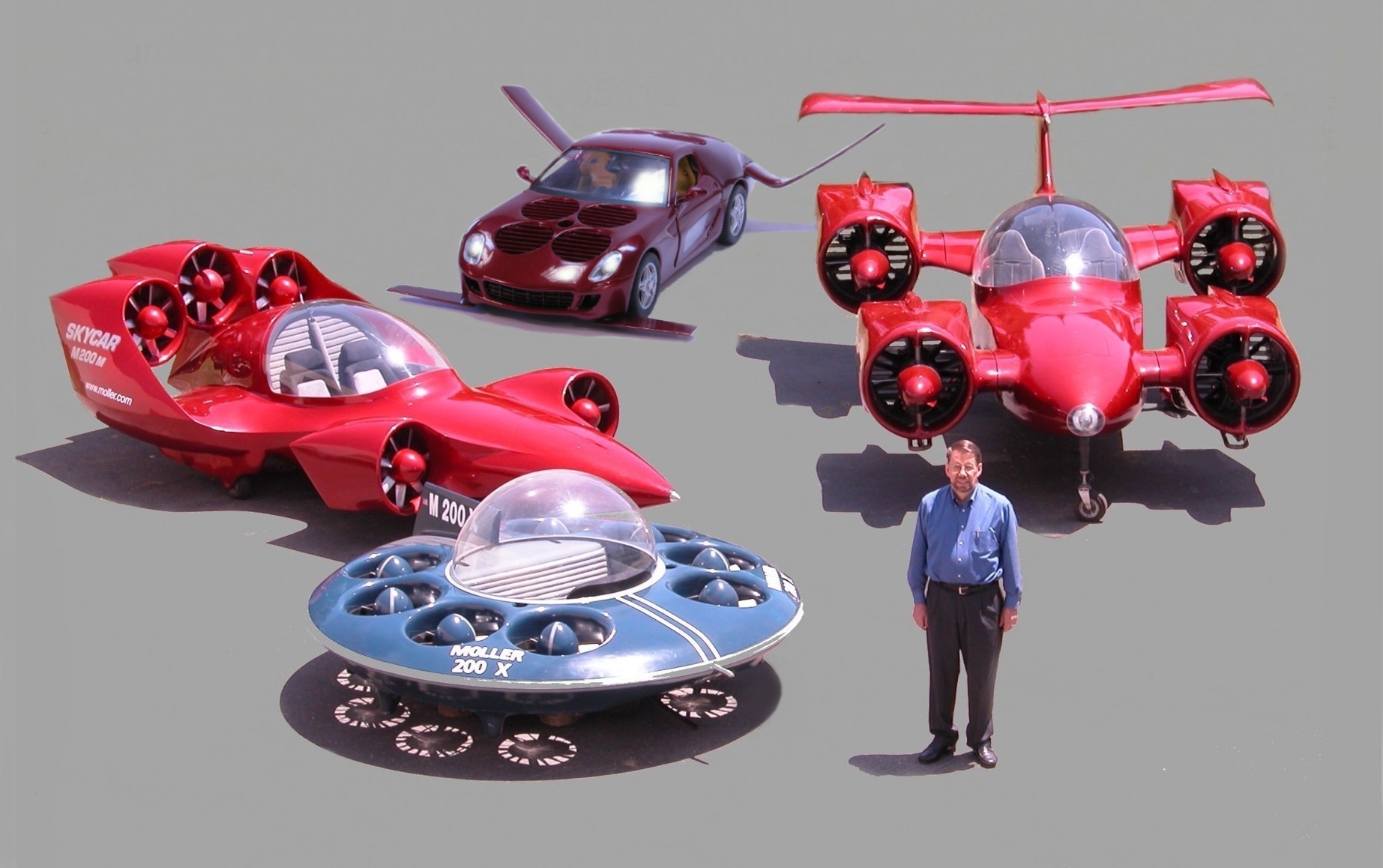 Note that Moller’s products aren’t anywhere near the point of production, and that none of the performance numbers quoted above have been verified in flight. In fact, all the Skycar has ever demonstrably done is to hover about twenty feet off the ground for about thirty seconds. Paul Moller has been saying that his creations are “almost ready for production” for more than thirty years, but they never seem to get any closer. When he can demonstrate that his craft can do something more than wobbly hovering for a few seconds, then I’ll take a closer look.